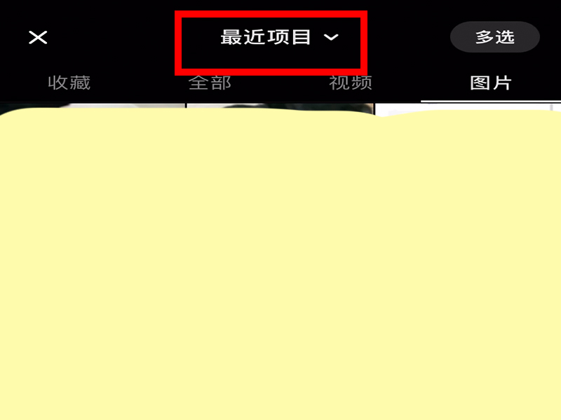 2、进入“照片选择”界面后,点击上方的“最近项目”,进入“项目选择”界面。