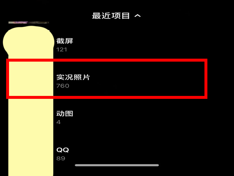 3、进入“项目选择”界面后,点击“实况照片”,进入“实况照片选择”界面。