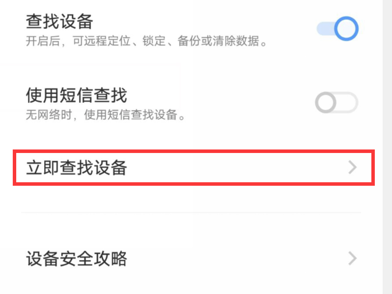 3、选择“立即查找设备”功能即可进行定位找手机。