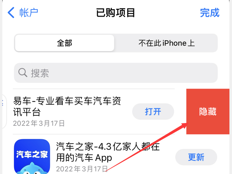 苹果手机的下载记录是不能删除的,但是可以设置隐藏起来不显示在已购项目中,操作方法如下: