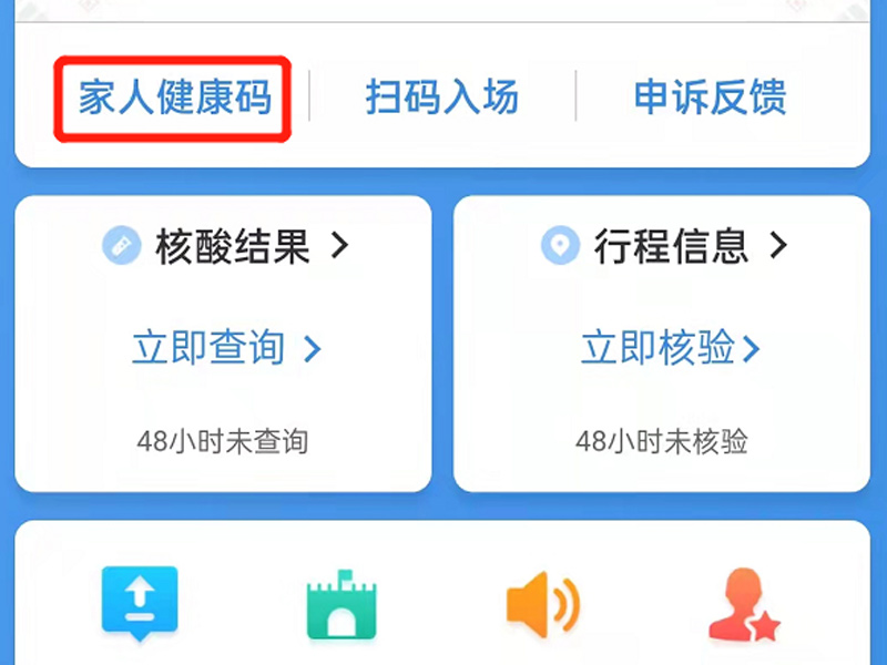 4、点击“家人健康码”,再点击“新增健康码代领”。