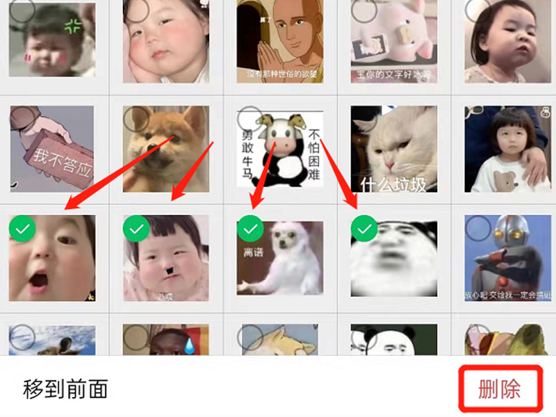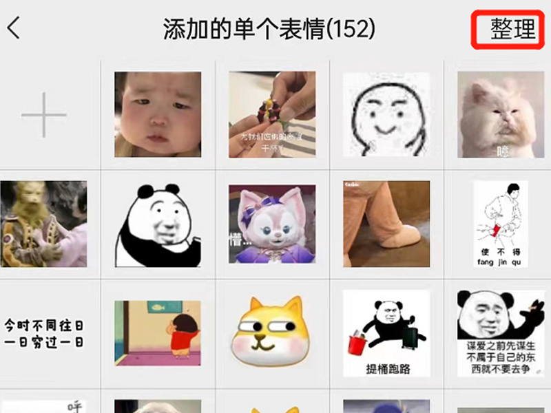 4、点击“整理”,选择要进行删除的表情包,点击“删除”即可。