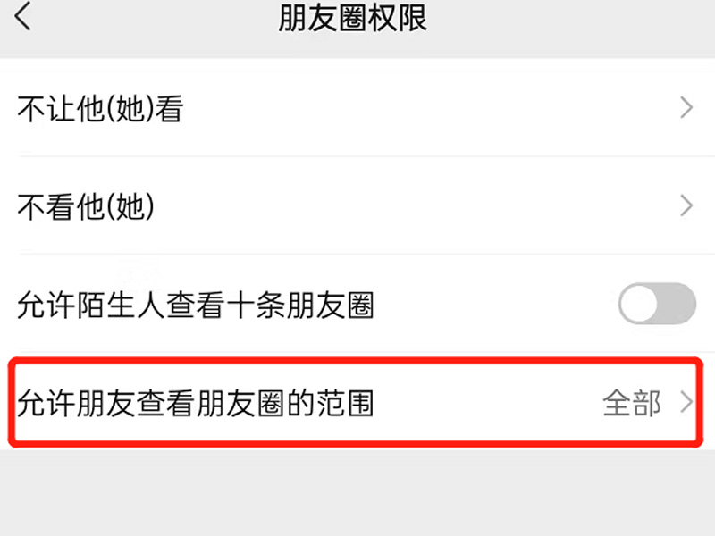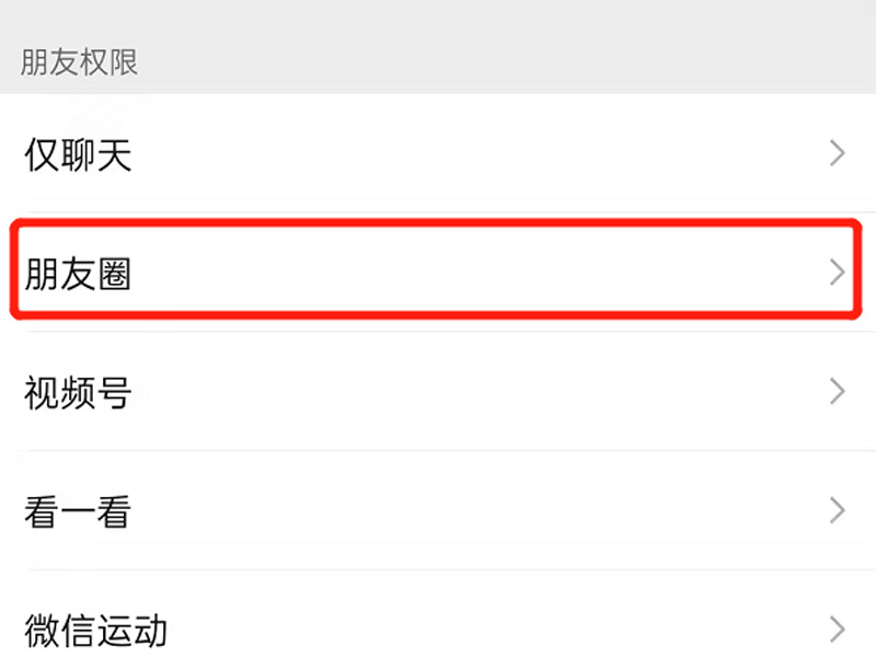 3、点击“朋友圈权限”。
