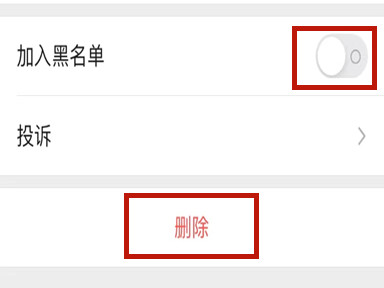 3、点击“删除”或“加入黑名单”即可把该联系人加入黑名单或删除。