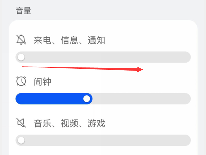 2、把“音量”下方对应的调节条向右滑动调大声音即可。