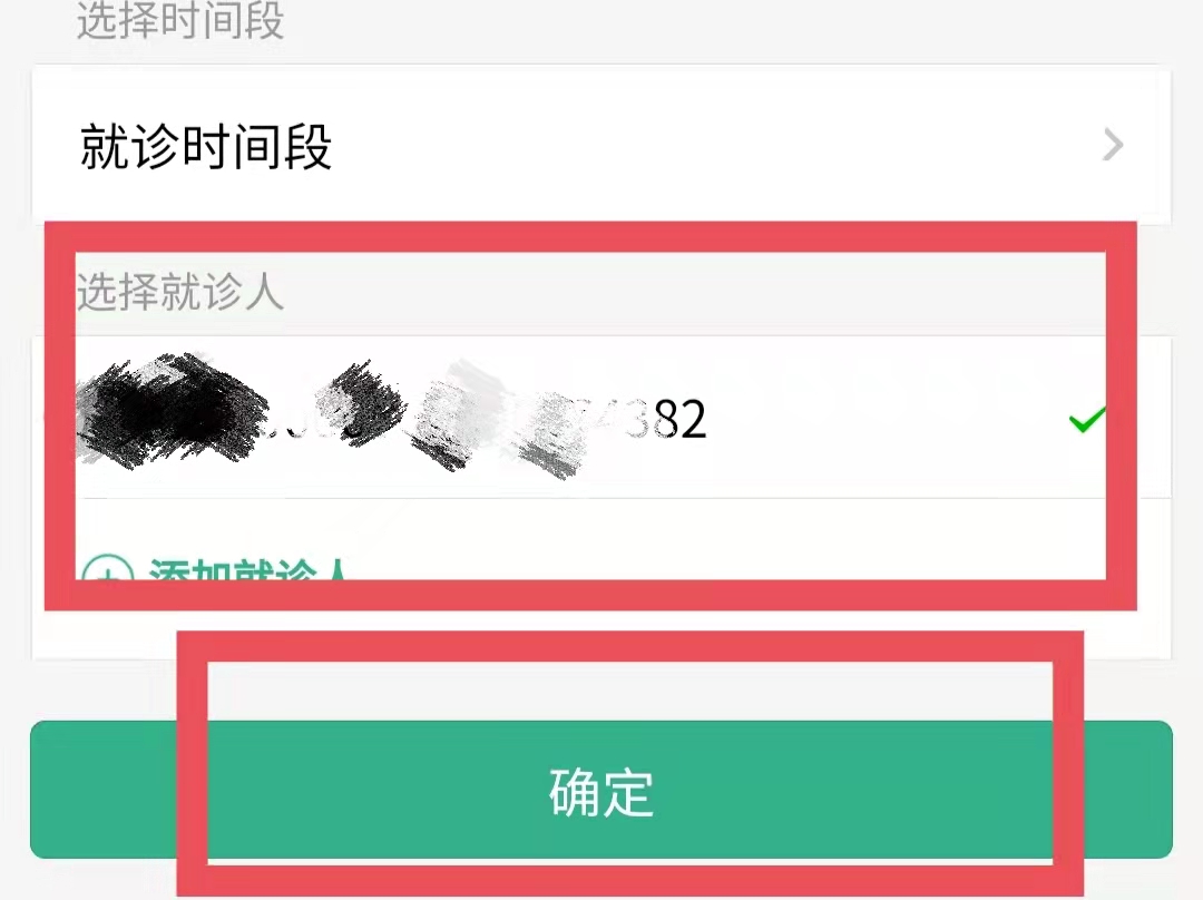 3、选择就诊人,最后点击“确定”即可。