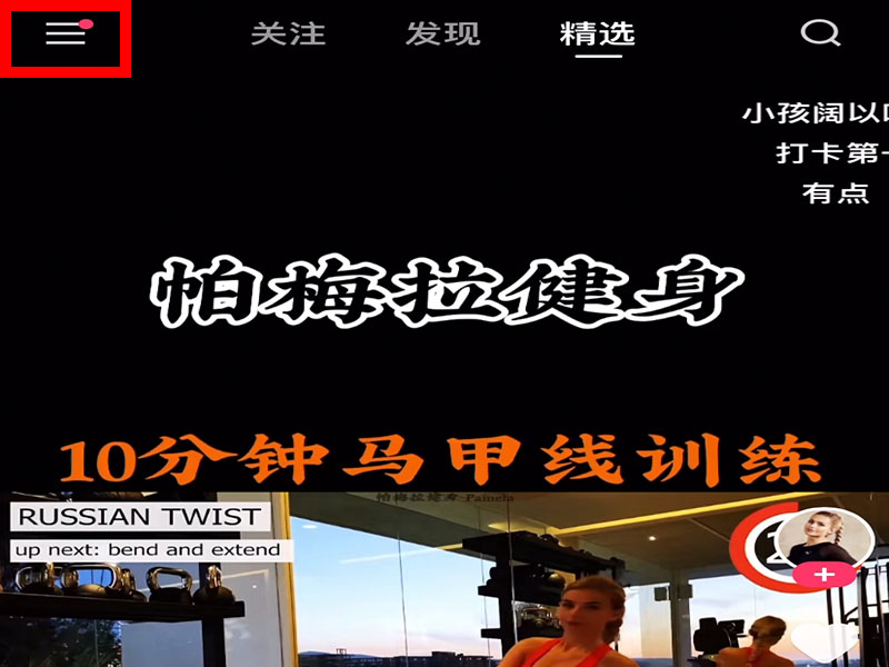 1、打开快手,点击左上角的“三条横线”,进入“功能栏”界面。