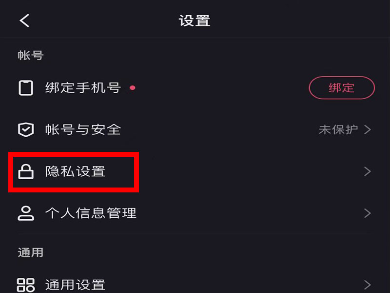 3、进入“设置”界面后,点击“隐私设置”,进入“隐私设置”界面。