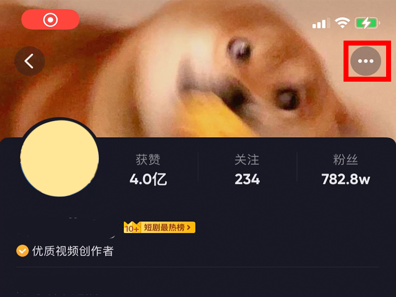 1、打开抖音,进入想要举报的用户主页,点击右上角的“…”,进入功能栏界面。