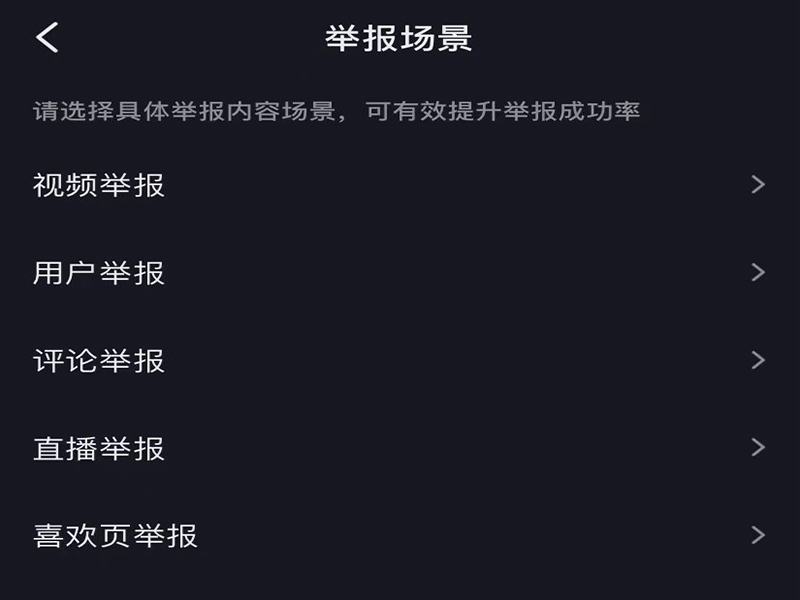 3、进入“举报场景”界面后,选择想要举报的类型进行举报即可。