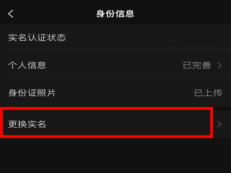 4、进入“身份信息”界面后,点击“更换实名”,进入“微信支付账户更名”界面。