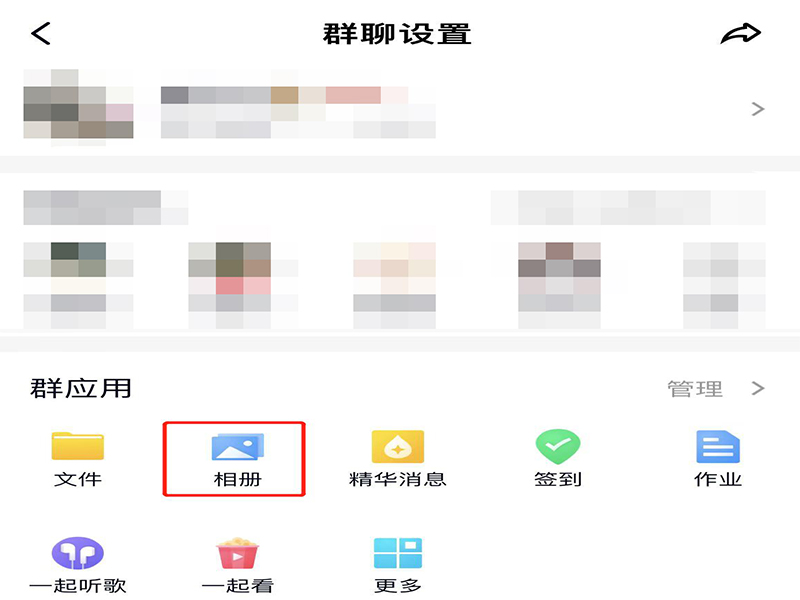 3、在群聊设置页面上,点击“相册”,进入群相册页面。