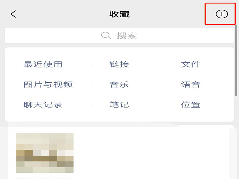 2、在收藏页面上,点击右上角“+”图标,进入笔记页面。