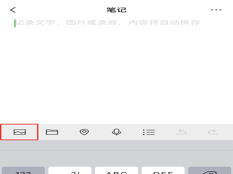 3、在笔记页面上,点击图片图标,进入手机相册页面。
