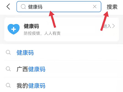 1、打开支付宝app,在搜索栏中输入“健康码”,点击搜索进入页面。