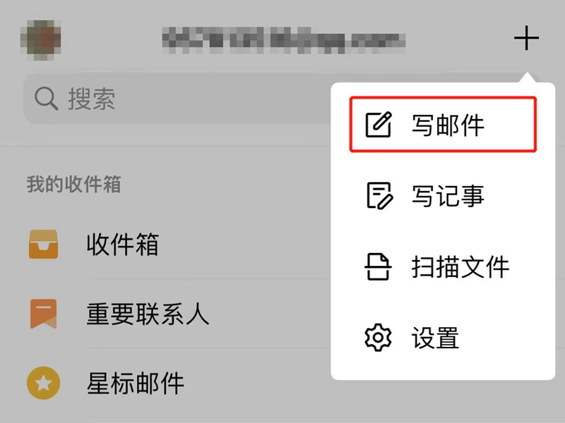 1、打开qq邮箱app,登录qq邮箱,点击右上角的“+”,选择写邮件。