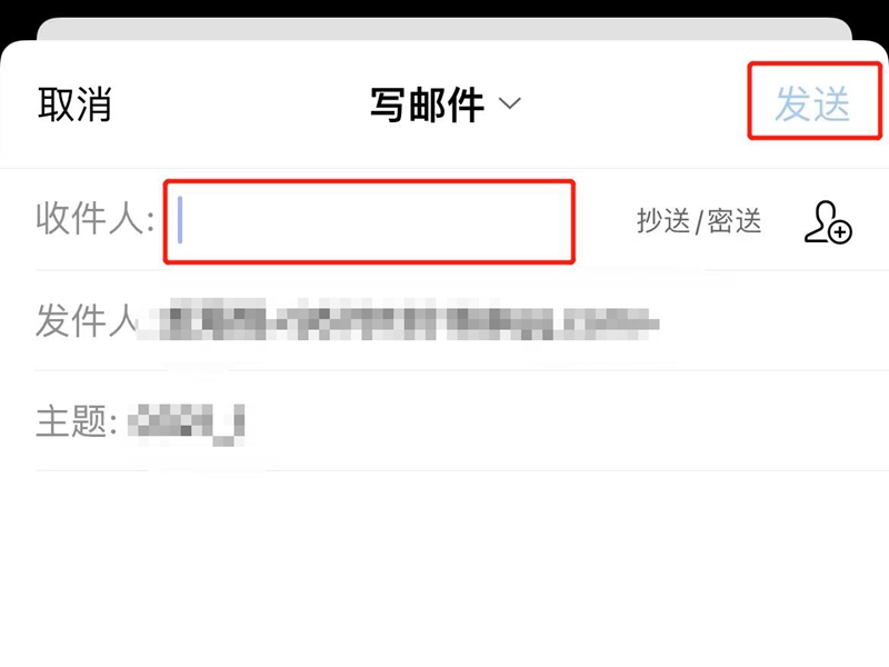 3、点击收件人一栏,填写好收件人邮箱后选择右上角发送即可。