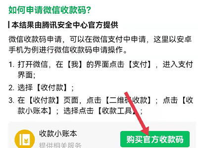 2、点击“购买官方收款码”,购买后即可获得微信收款码,直接使用即可。