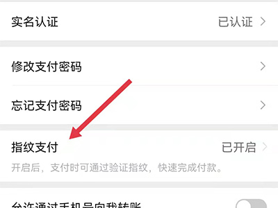 3、在页面的列表中,选择“指纹支付”,点击进入。
