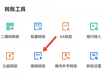 2、在页面的转账工具信息栏中,点击“撤销转账”,进入页面。