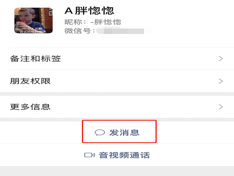 2、在好友个人页面上,点击“发消息”,进入好友的聊天页面。