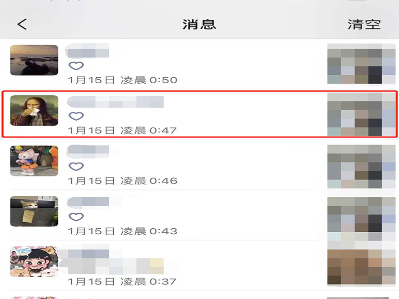 4、在消息页面上,找到需要删除对方点赞的动态信息,点击进入动态信息详情页面。