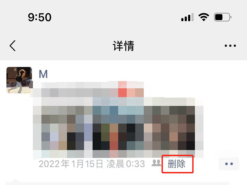 5、在动态信息详情页面上,点击“删除”,即可删除掉对方点赞过的这条动态信息。