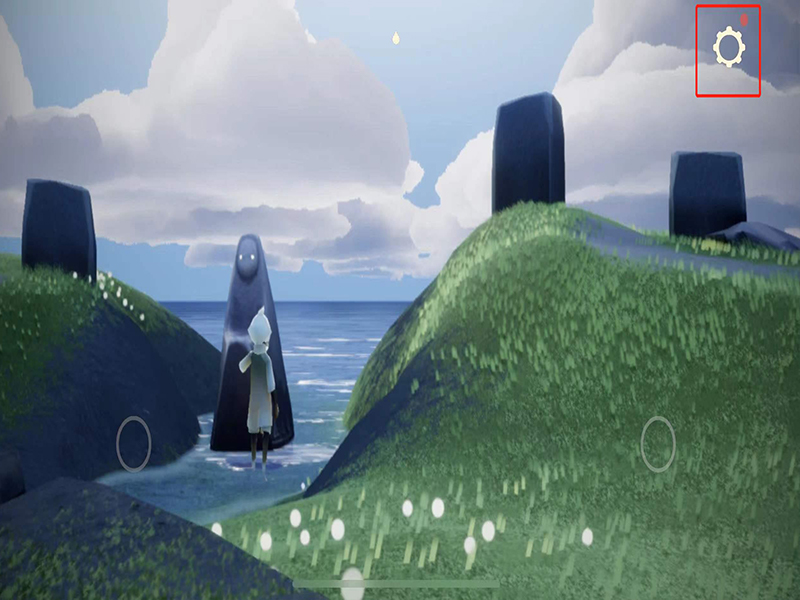 1、打开光遇app进入游戏画面,在游戏界面上,点击右上角的设置图标,进入设置工具栏。