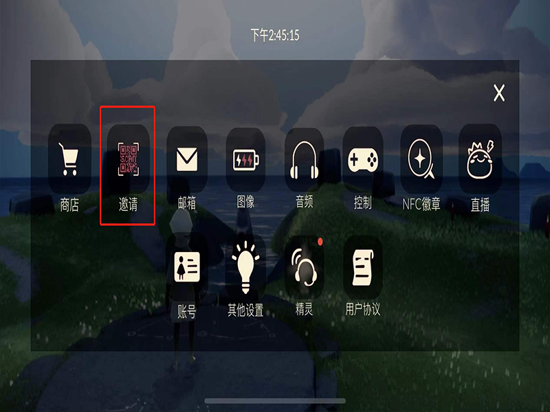 2、在设置工具栏中,点击“邀请”,进入好友邀请界面。