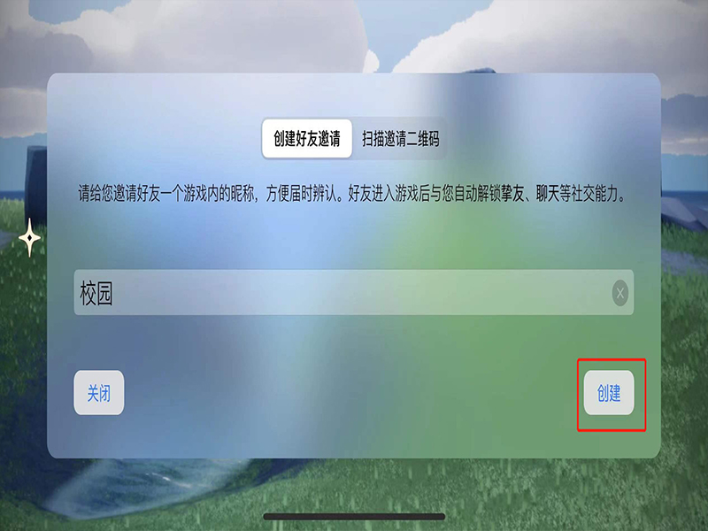 3、在好友邀请界面上,输入给好友的备注昵称,即可点击“创建”生成链接。