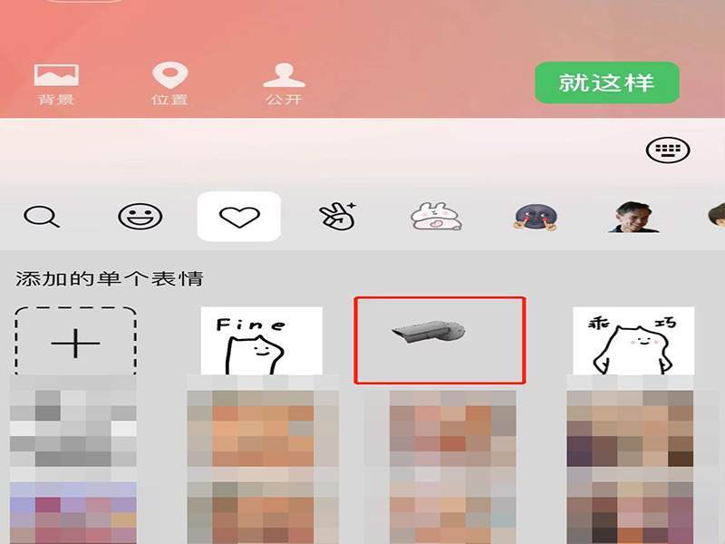 4、在表情页面上,找到并点击动态摄像头,即可将动态摄像头添加至状态编辑页面上。