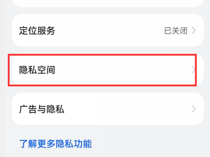 2、点击“隐私空间”按钮,进入隐私空间的设置页面。