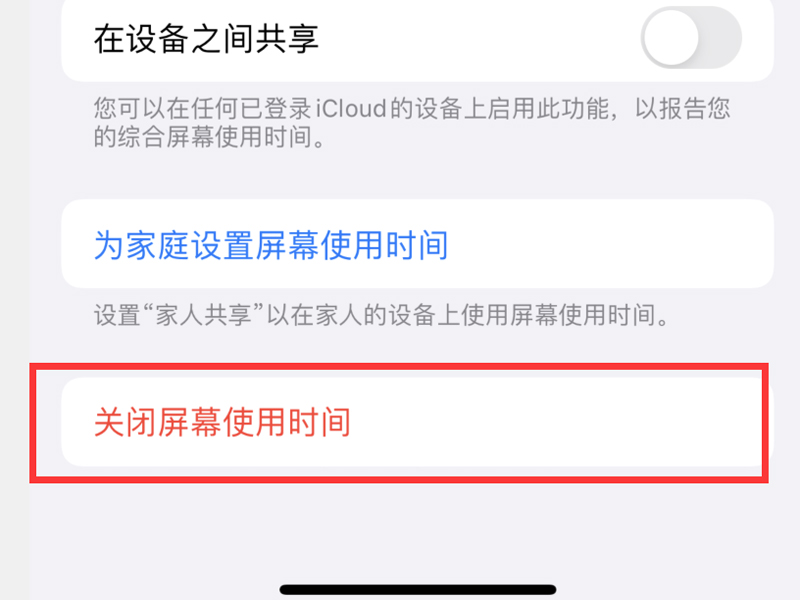 2、点击“关闭屏幕使用时间”按钮,进入关闭屏幕使用时间的页面。