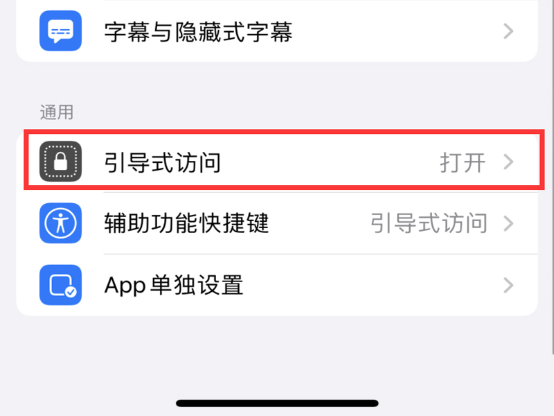 2、点击“引导式访问”按钮,进入引导式访问设置中。