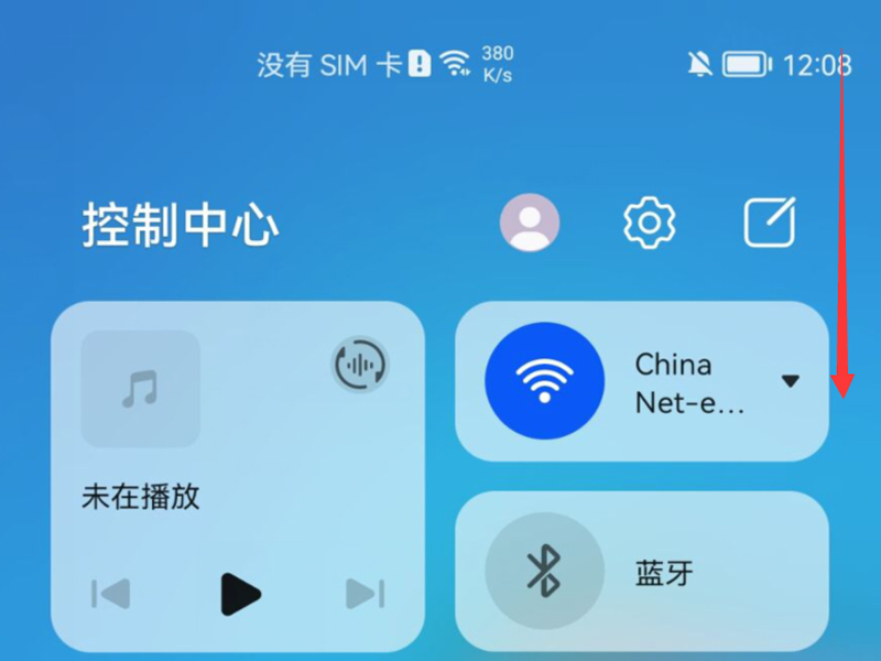 1、进入手机的桌面中,从手机屏幕的右上角往下滑,呼出控制中心的界面。