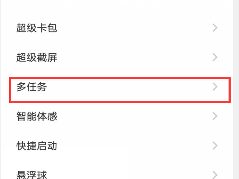 2、点击“多任务”按钮,进入多任务的设置页面。