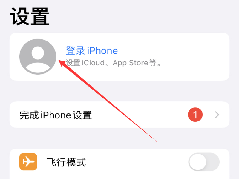 1、打开手机的设置,点击页面中的“登录iPhone”按钮,进入账号登录的界面。