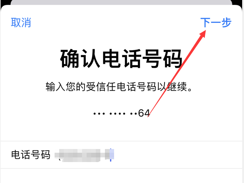 3、输入苹果id之后点击右上角的“下一步”按钮,进入密码的找回页面。