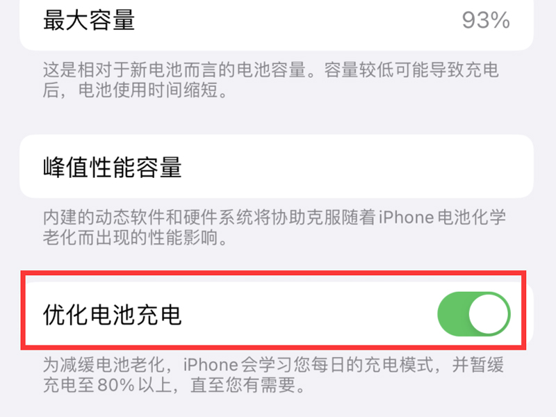 苹果13优化电池充电是指在空余时间先快速充电至80%,再缓慢地充满最后的20%,以此来延长电池寿命,打开优化电池充电的方法如下: