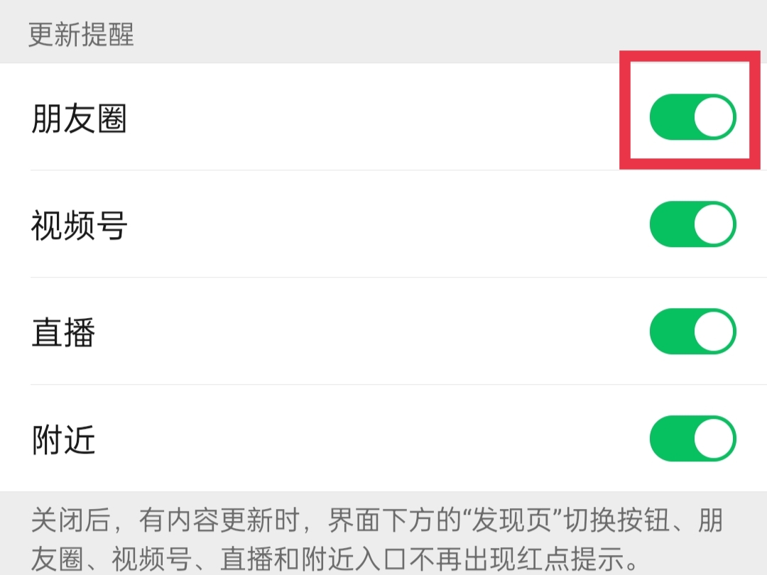 3.在新消息通知中找到朋友圈更新提醒,点击开启即可。
