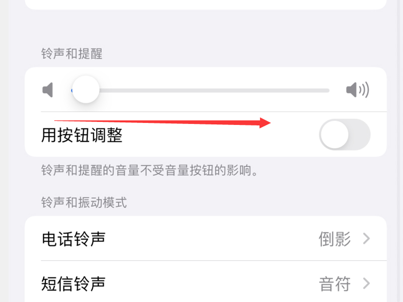 2、把“铃声和提醒”下方的调节条向右滑动调大音量即可。