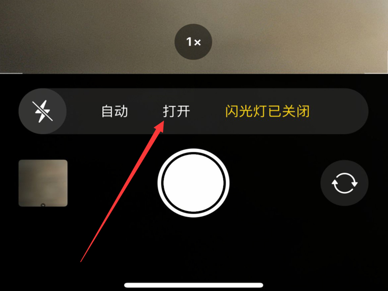 3、选择“打开”选项即可打开闪光灯。