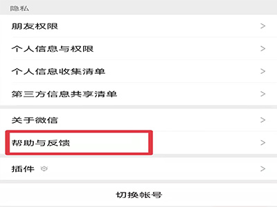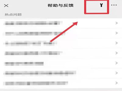 3、在“帮助与反馈”页面,点击右上方的“工具”图标,进入微信修复工具页面。