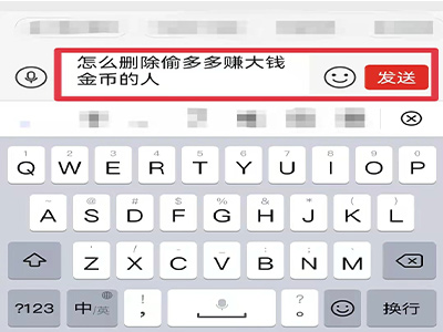 4、在搜索框输入“怎么删除偷多多赚大钱金币的人”,点击“发送”。