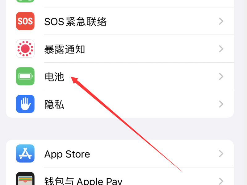 1、打开手机的设置,点击“电池”按钮,进入电池的设置页面中。