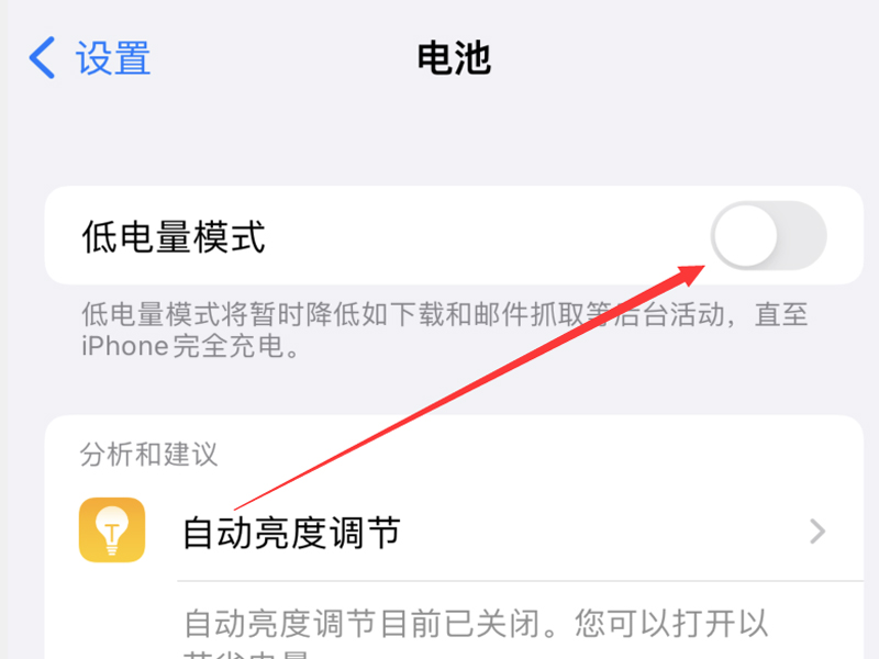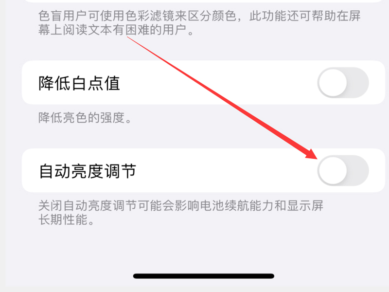4、根据建议,把“自动亮度调节”的按钮打开。