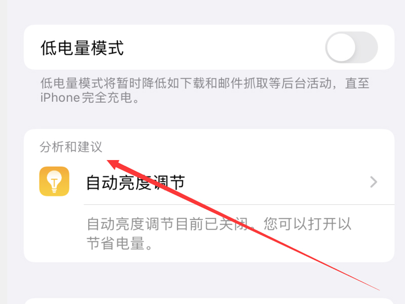 3、点击“分析和建议”按钮,进入到降低耗电的设置页面。