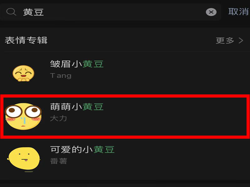 3、进入“搜索结果”界面后,点击想要下载的表情包,进入“表情包详情”界面。