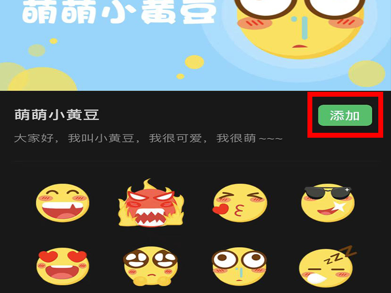 4、进入“表情包详情”界面后,点击“添加”即可。