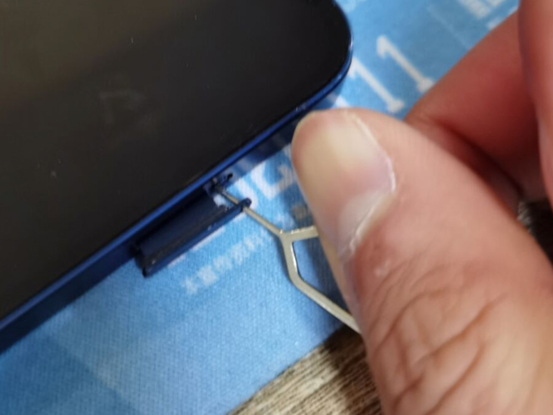 1、准备一个取卡器,将取卡器对准苹果手机侧边的插卡孔。
